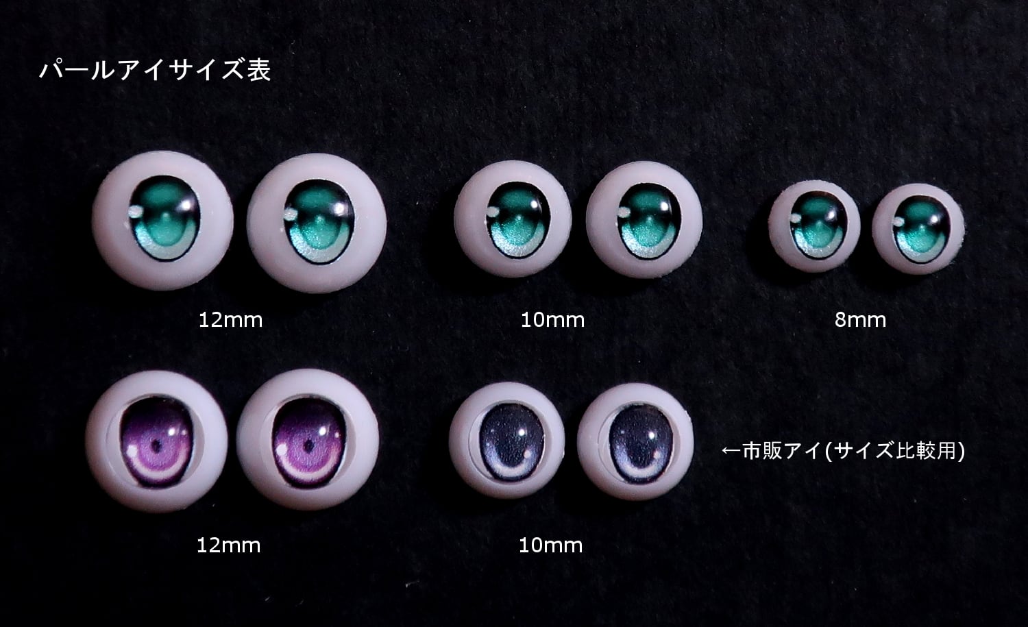 パールタイプの10mm及び12mmサイズのレジンアイです。